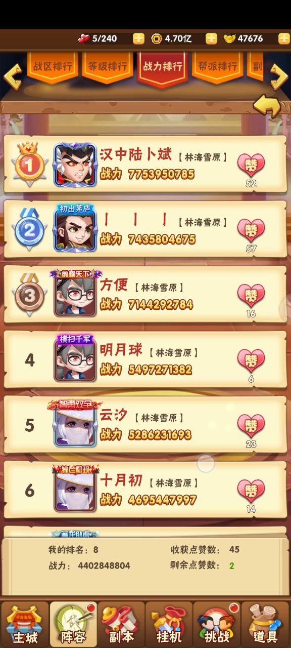 主C 五星南华 极限培养 进阶和装备进阶资源全部投入 三星紫金三yyds 副C 五星于吉 神兵配五星七星匕首 配合5⭐技能,大量回复 又肉又输出高