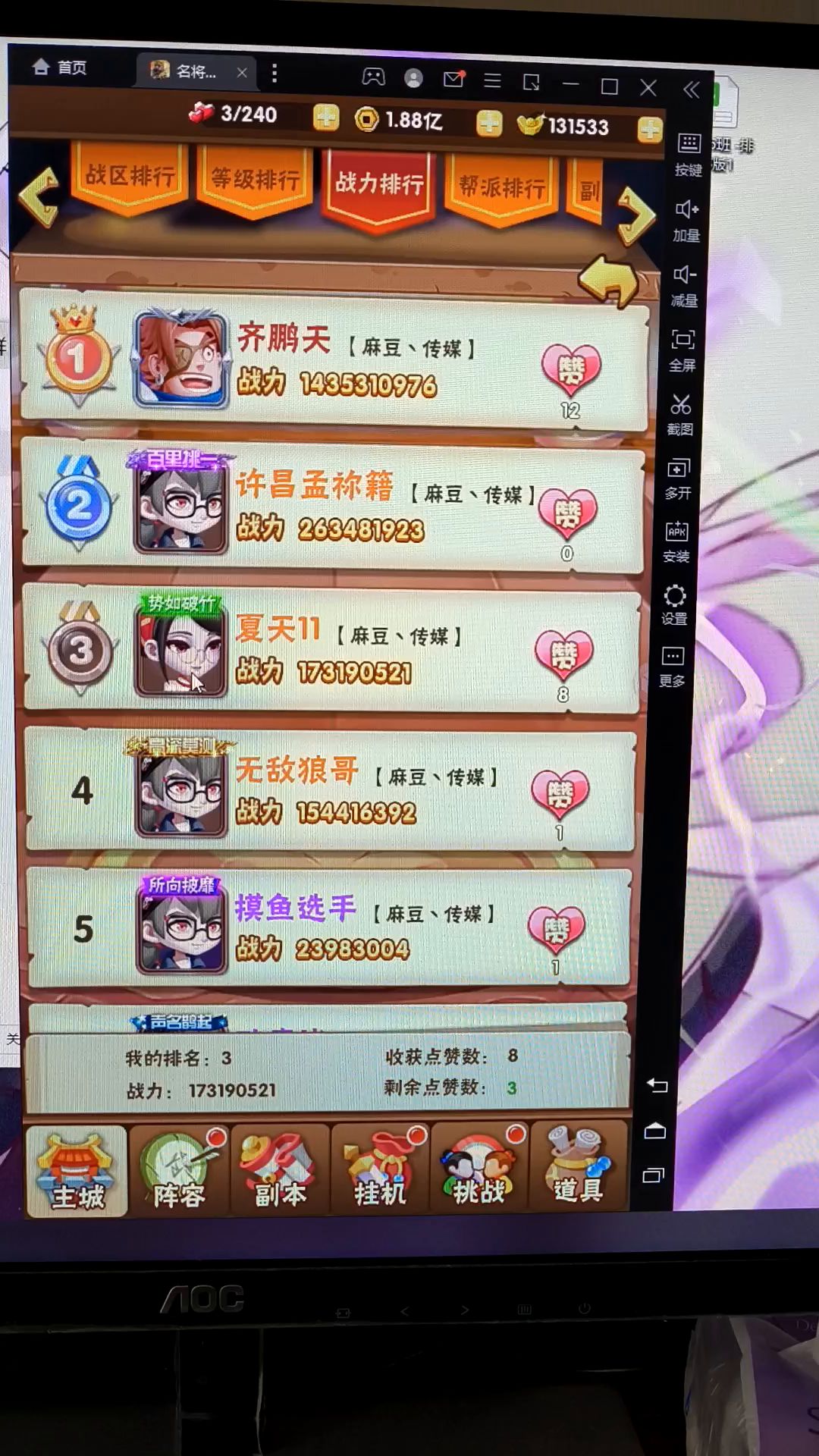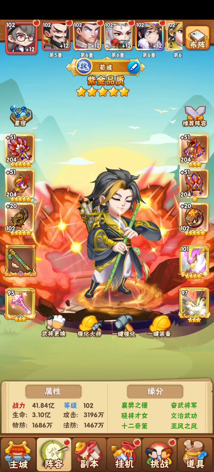 主升一个武将,其他的随便凑合,就可以越阶了!