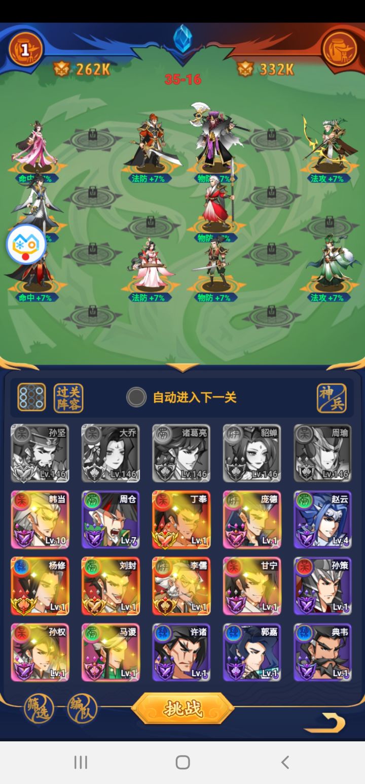 这里给大家推荐一下过图神器搭配,目前最强过图阵容,50关以后偶尔要用到孙坚聚怪给吕布打。