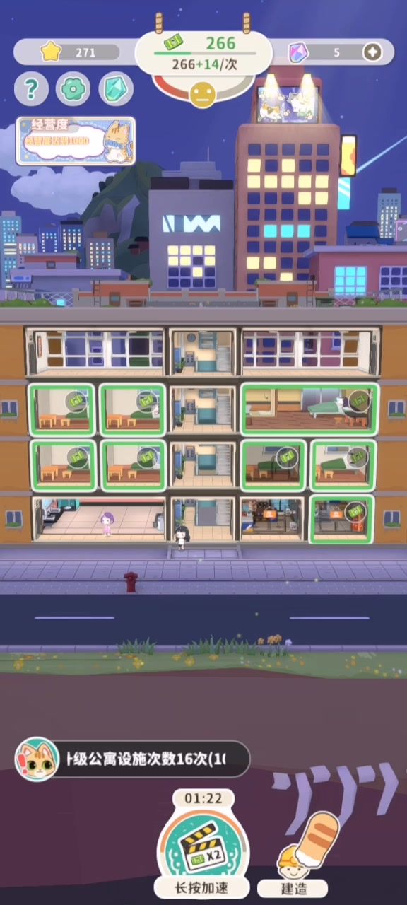 做最靓的猫婆婆,赚最豪横的钱,打造一流的幸福公寓。大家好我是晨晨,今天将会让大家体验到港式收房租的快乐,快乐的源泉来自于今天一款游戏猫婆婆的幸福公寓。现在想想怪不得人家一天天那么潇洒。游戏开始,我们现在的身份是猫婆婆而且是幸福的,进入后手持一大块地皮,会出现一个贴心的小猫,叫它小晨因为我是晨晨。我们地皮的用途是吸引租客和店铺出租以及对外扩建。#宝藏游戏安利派对#攻略#游戏安利#游戏推荐
