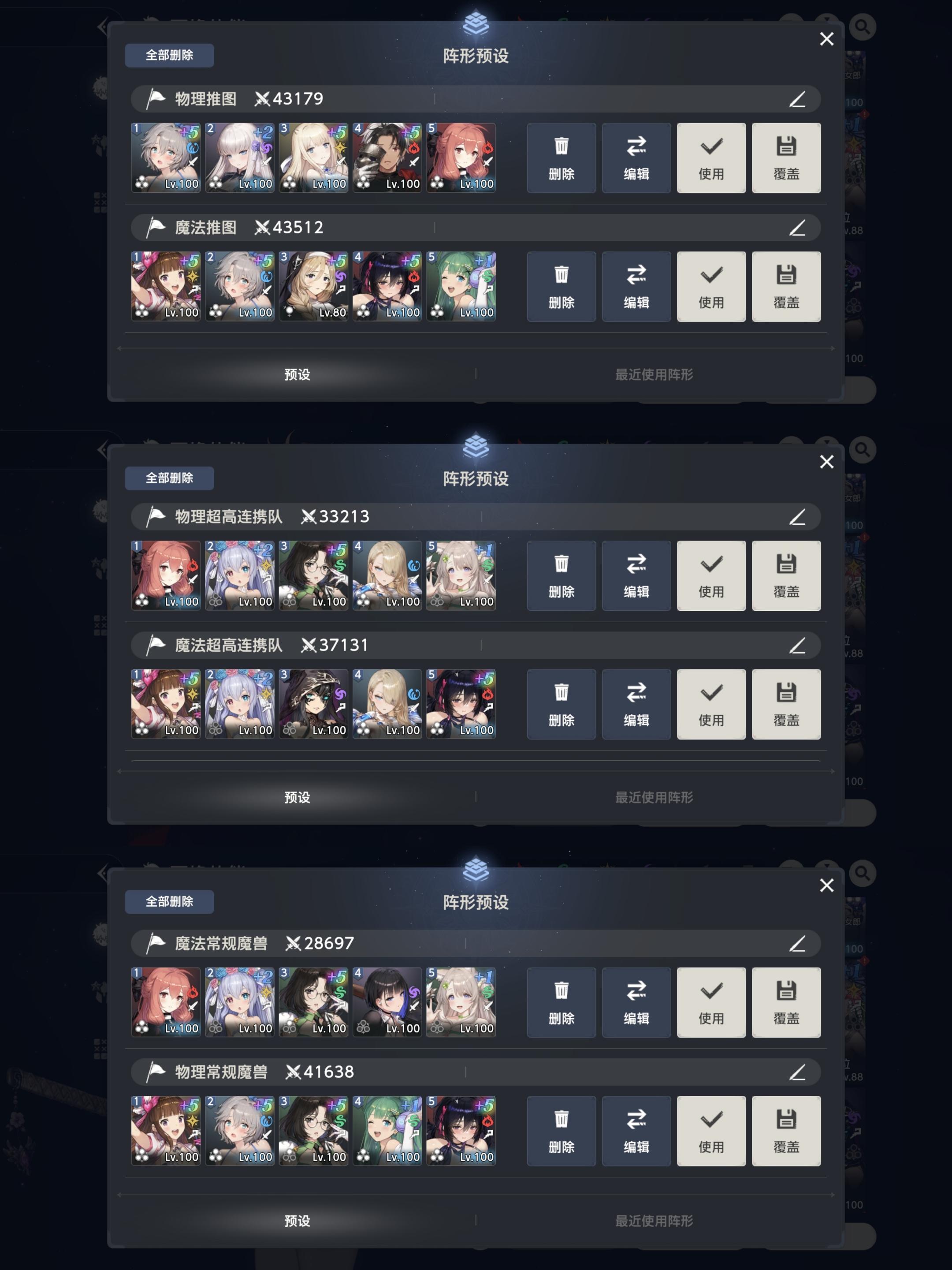大佬们帮我看看,还要练啥角色呀?我目前的配队是这样的,两个新角色都抽+5了