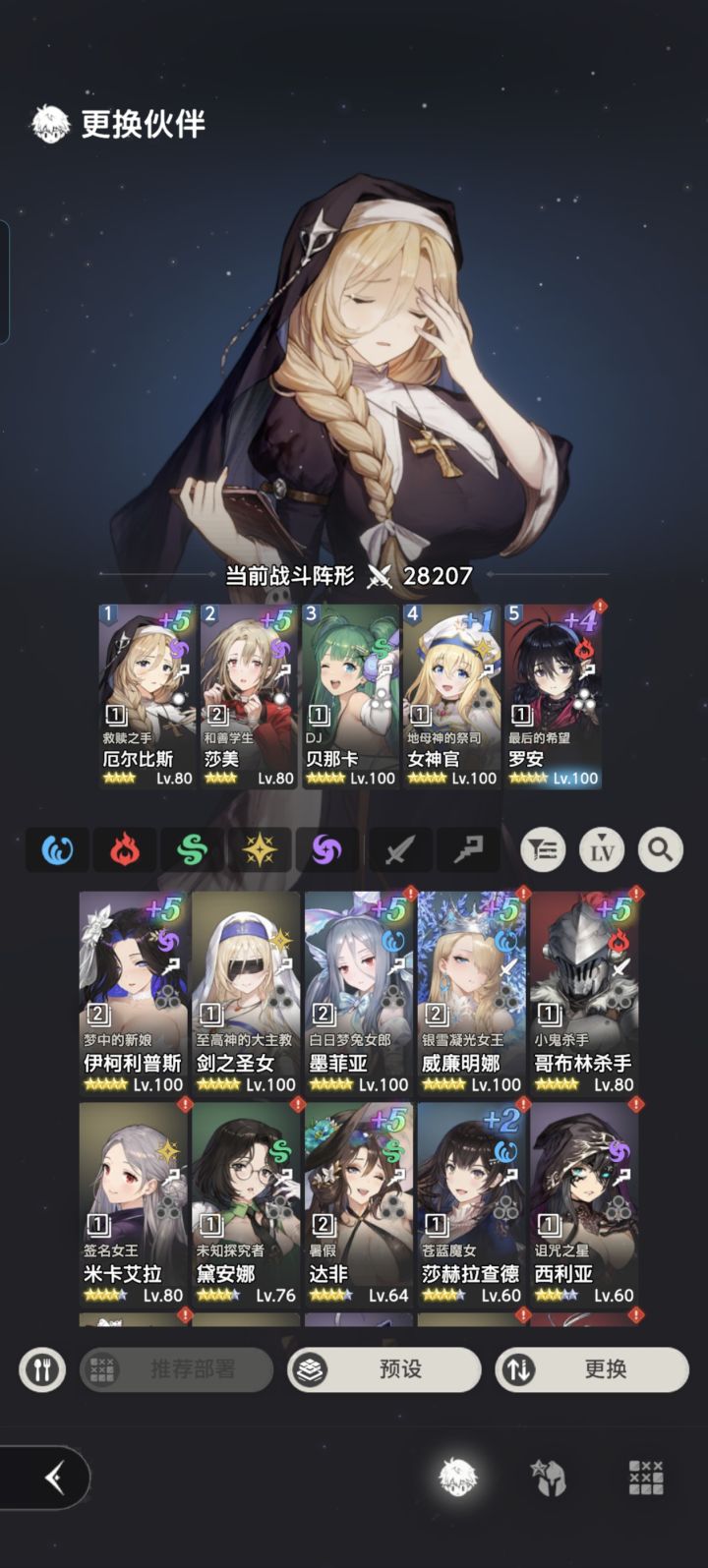 大佬们帮我看看,还要练啥角色呀?我目前的配队是这样的,两个新角色都抽+5了