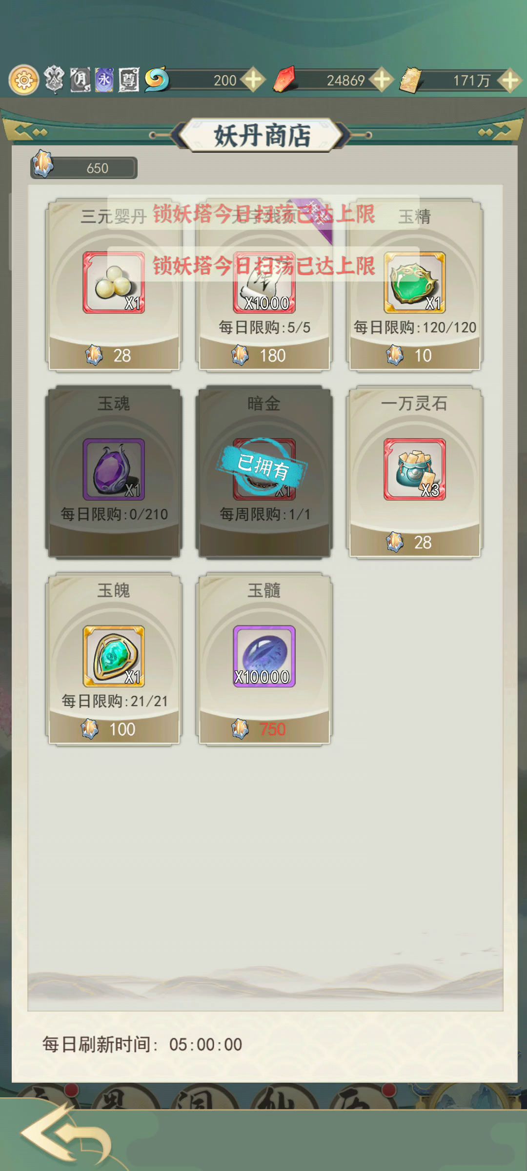 一、访市 1.1:人界 1.1.1: 青龙徽记,白虎徽记,朱雀徽记,玄武徽记。这四种徽记是升级洞府的必备物资。( 灵石的全买,需要花仙玉的不买) 1.1.2人界含光草用来炼药,花灵石的全买。其它用来炼药的材料可以看个人法宝情况买一点。(前期可能卡锻体) 1.1.3虚空石升背包格子,花灵石的全买,开满背包就别买了,不要花仙玉买。 1.1.4 无字残页和玉髓,这些可以适当买一点点,无字残页