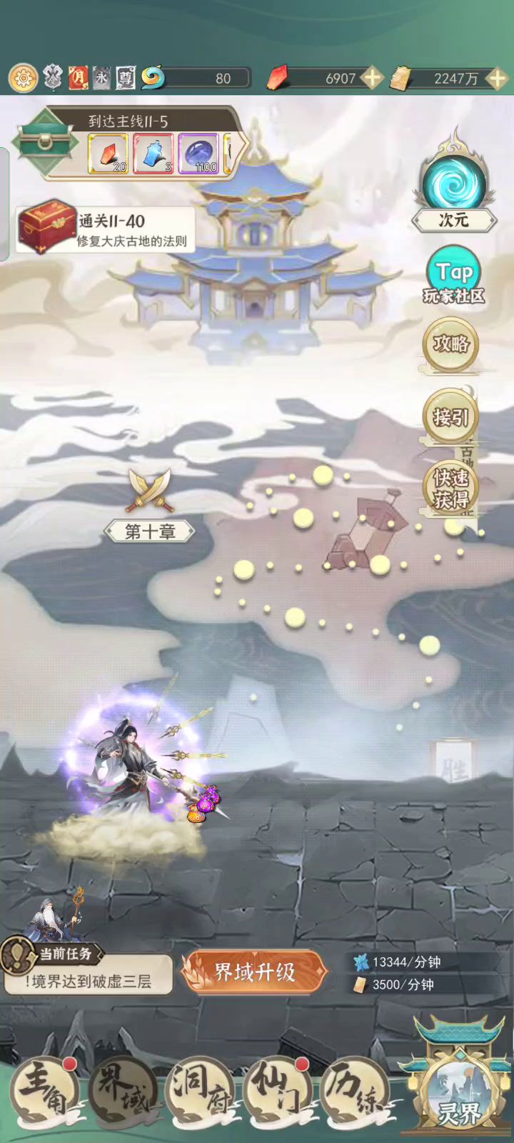 经过人界10天游,终于到破虚飞升了!ps:我有肝结缘小号,仙玉比较多,所以有买了几天的新服600卷轴礼包,仙玉不够的量力而行!! 飞升后可以回人界,人界的任务要照样做!别忘了 Tips:别贪恋人界那点花花草草,早日破虚飞升才是王道。大概到了冲虚3左右自己算下卷轴够不够飞升经验,如果够马上飞升!附带竹子大佬的境界图。 ①飞升 只要破虚1界域通关到10-40就能飞升(战力也得400万左右才能打通,我那