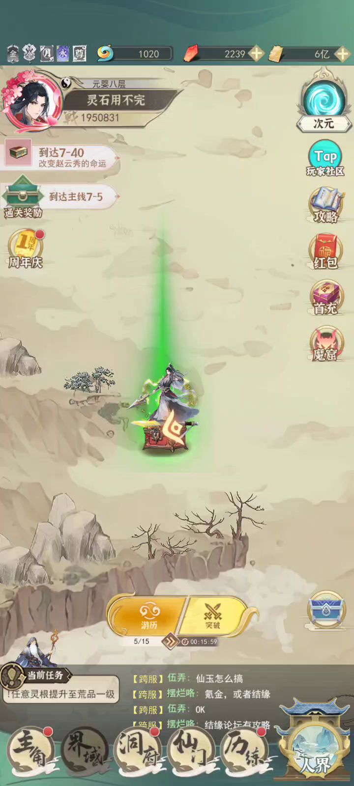 我们的目的是以最少的时间和最少的精力换取仙玉,可以根据游戏每个星期的开服时间来规划,在新区开放在第三天的时候进行创号结缘,凌晨十二点上号就可以直接炼虚,领取大量仙玉 首先,我们创号,去官方群里或者taptap论坛领取大量兑换码进行兑换,目前更新的兑换码大概有两万五千玉 开局,正常做主线,记住不要使用快速战斗,有教程指引可以不用做的,我们要留到最后再使用。 等我们开始解锁了次元秘境,无论你当前什么境