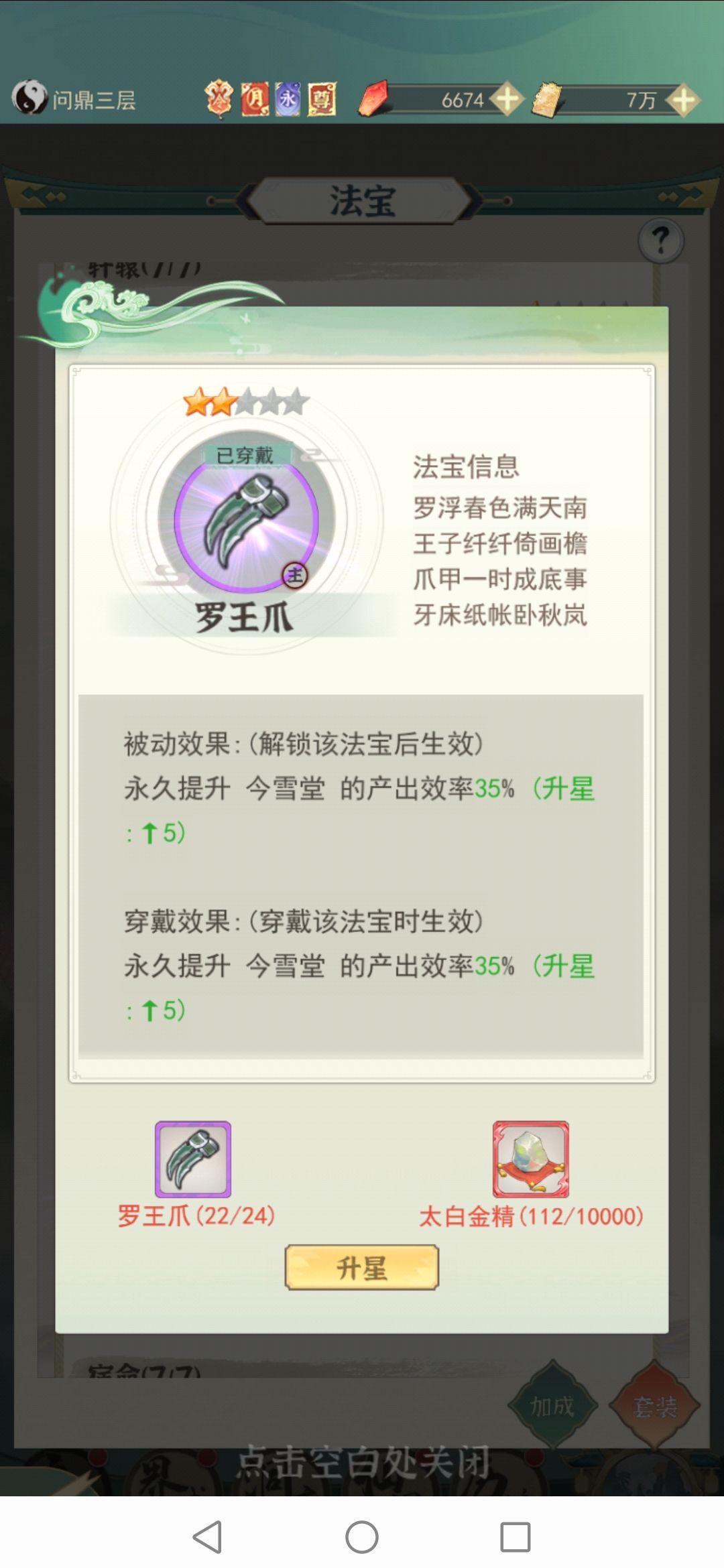 3不花钱前期就慢慢混,法宝箱子最好存-一个月再开。因为1个月内是开不出限定法宝的。1个月以后才可以开出来。