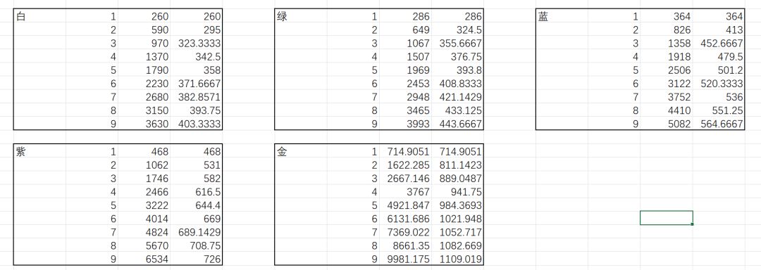 老贼撑住 闲来无事 ,做了个表,以攻击力为单位,列出各个品质,每一格子对应属性,方便各位选用,剩下就是玩俄罗斯方块咯,可以参考表格进行不同格子的搭配。