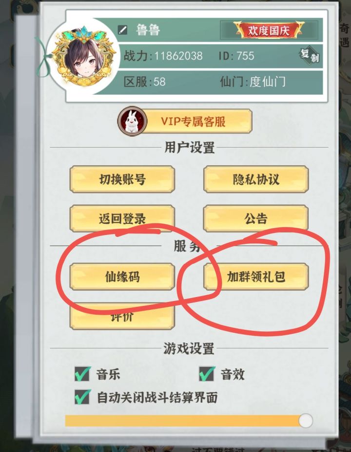 本篇攻略目前还是有参考价值的,毕竟游戏一直在更新,但只要不踩坑就问题不大如果开局在光阴瓶和神授玉简之间做选择,我建议是选择解锁光阴瓶,而且光阴瓶在更新后加强了很多,两个神话自选可以都选两个光阴瓶,1星光阴瓶升级速度飞起!新区的开放时间是星期二和星期六,打算氪金的话可以先看看时间开局过完新手引导后,可以点头像打开设置,可以看见仙缘码,还可以加群,如果你不知道仙缘码多少可以加QQ群,然后@Q群管