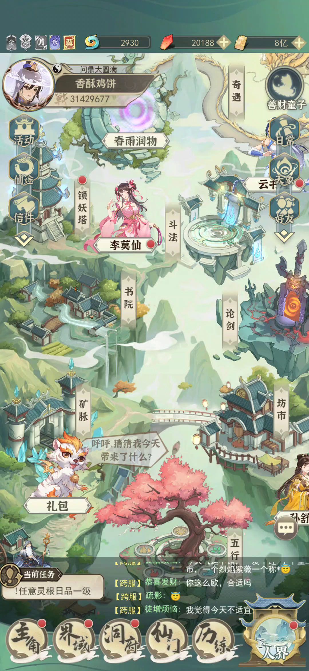 准时进服,先跟着主线走,能兑换兑换码后去群里艾特Q群管家,领取大量兑换码(兑换码可以批量使用,全部复制粘贴就行),第一天我觉得是可以买新服活动里的钥匙的,新服活动位置:在人界小老虎里。 第一天就是推主线,推不动了就升一下修为。