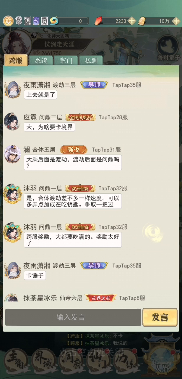 为了白嫖碎片,要说好多啊感觉。 0氪玩家一般就前面几个境界要点很多,到后面只需要早上去参加那些活动,比如斗法,跨服斗法,论剑,还有五行山和四象塔这些,还有每日任务都要尽量完成,因为有书院学分,600就可以白嫖一个粉色法宝,加修为速度的,到后期基本都是卡修为,斗法得的荣耀点可以优先换擒龙法宝盒子,把龟壳升满,在看需要的再换。 其他的我就不多说了,大佬们都弄得很好,去看看攻略那,如书页,悟道,宠物这些,你想要的基本都有。😄😄😄 悟道配方可以在群里问,都是紫色悟道以上。 仙缘码群里@Q群管家就有,不需要一个一个点,直接复制到游戏里点头像那有个仙缘码按钮,粘贴就行了。 5区 青衫 一切为了白嫖碎片哈😝😝😝😝😝