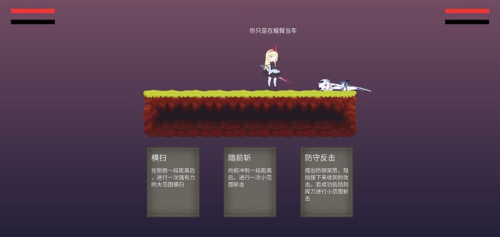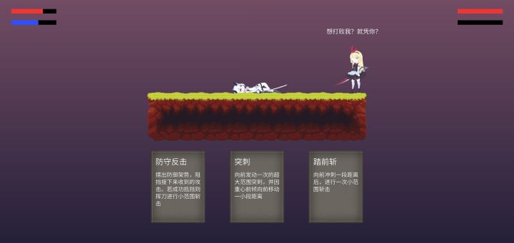 闪避:能拉开距离同时回复架势,能躲开所有的攻击(可以说相当于是无敌),除了无法造成伤害以外没有缺点,由于对手没有远程攻击,而我方具有远程攻击,闪避其实很多时候是稳赚不亏的,可惜的是闪避后的格挡无法触发防御反击。