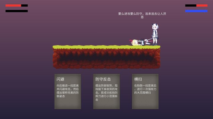 98min,写一点心得……果然闪避和飞刀还是太强了,特别是闪避。要是对手也能用就好了。闪避是开局最优解,直接拉开距离,对面哪怕下一手是横扫都砍不到你。中场使用能回避绝大多数攻击,包括非贴贴情况下的突刺。还能大幅降低疲劳值。飞刀本身就很强,无限攻击距离,无法格挡反弹。虽然是绝对后手但似乎自带极高减伤,开局用来硬扛对面的横扫只会掉一点点血。这使得它中场使用也不一定要长距离攻击。某些情况下甚至比防
