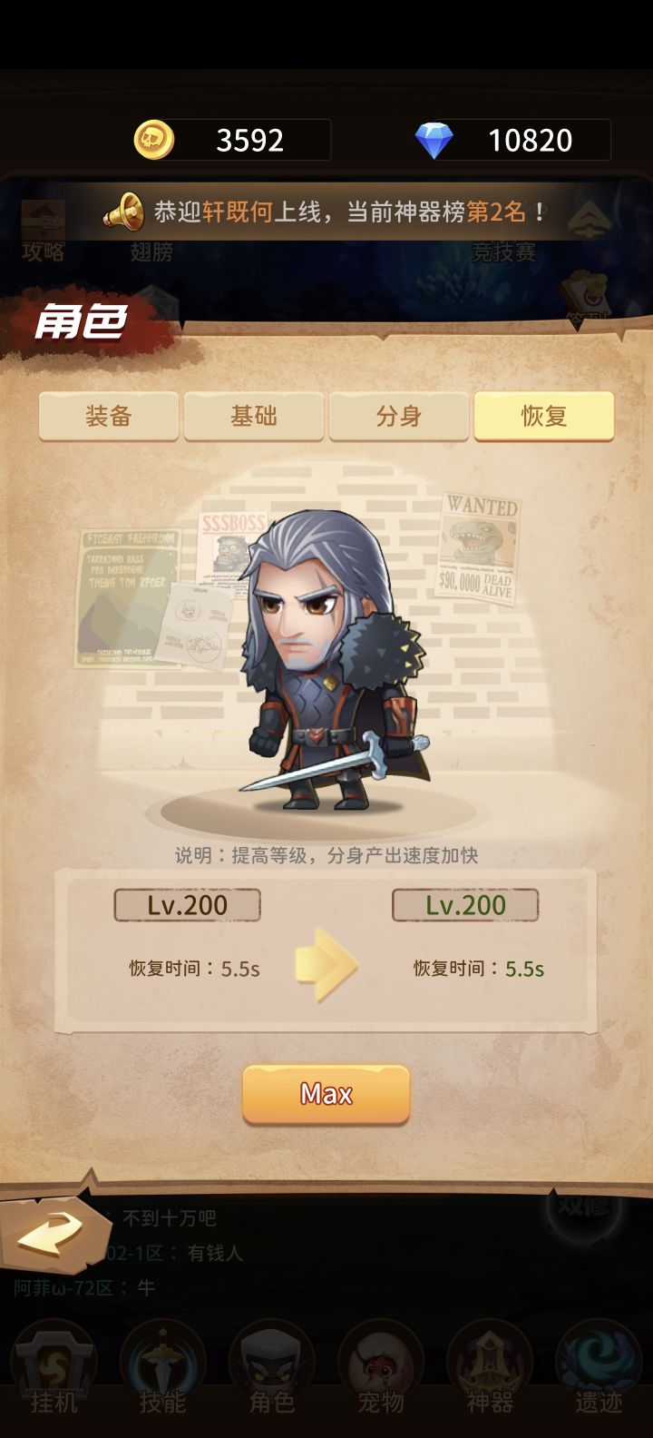 装备满级后建议做神器,商店有1500钻20神器碎片每天能买三次,能买多少就是多少,广告还有15个碎片。