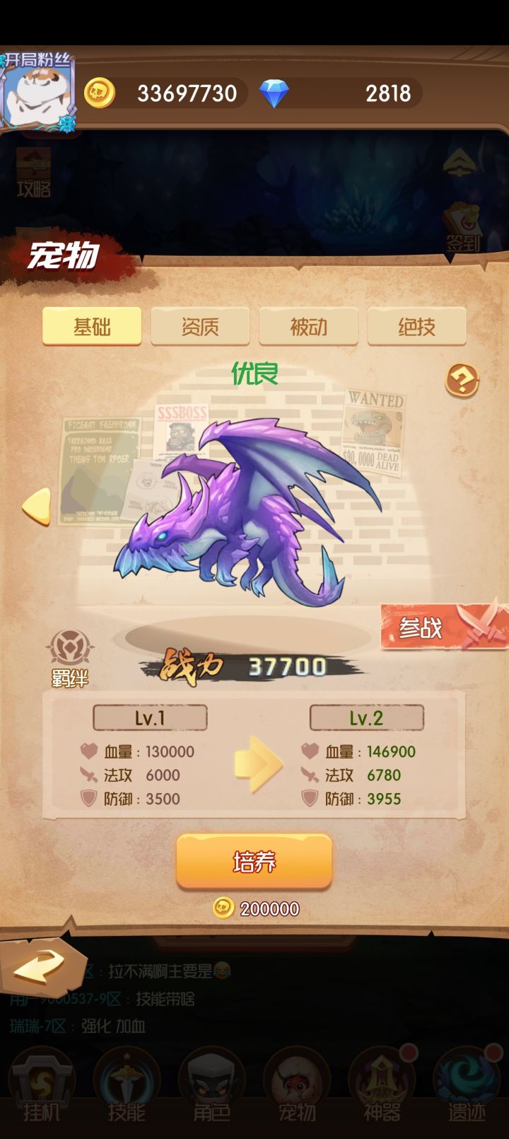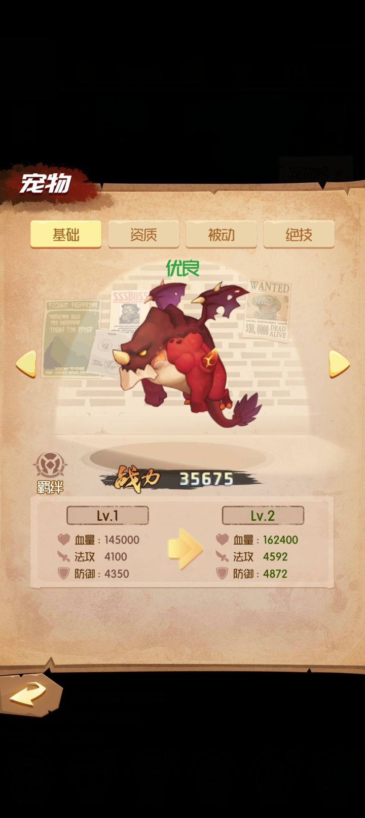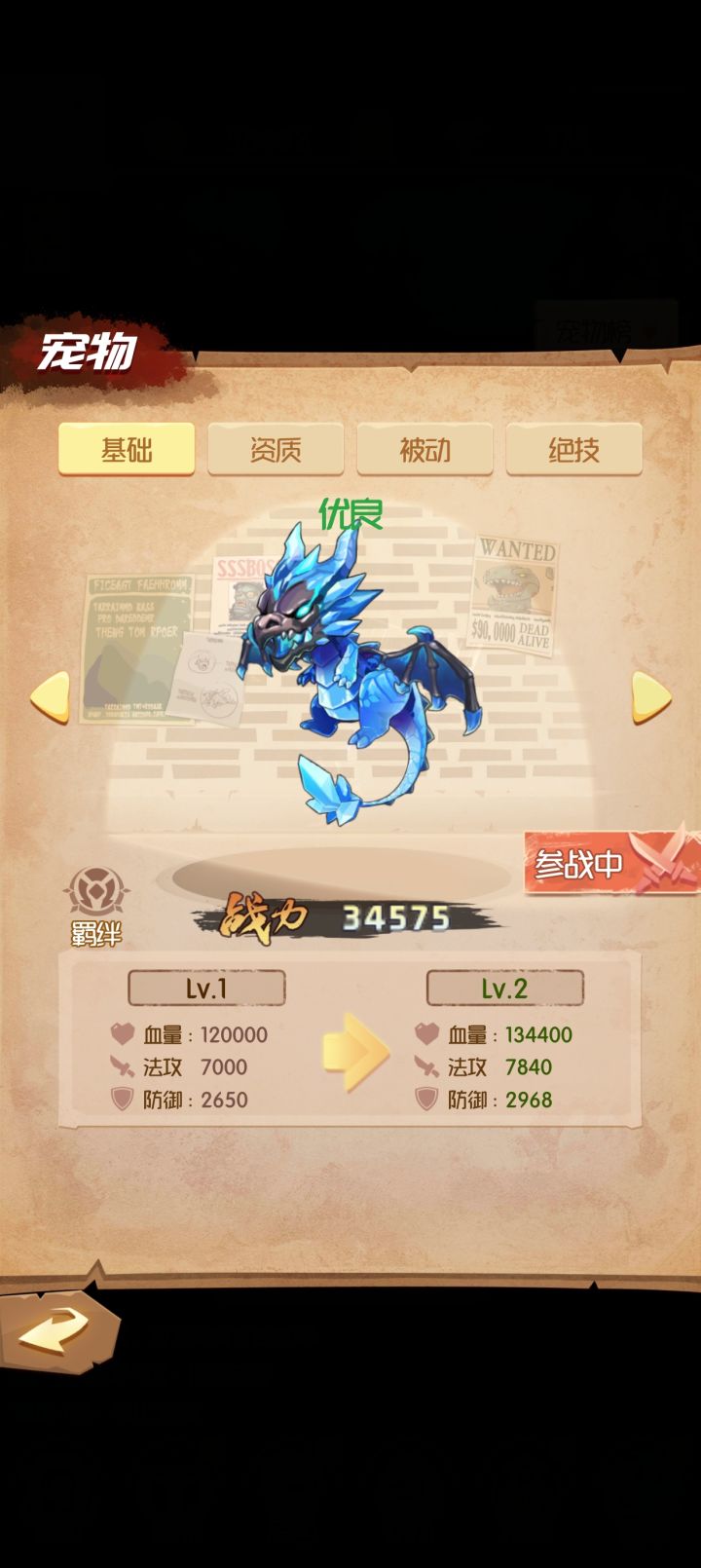 宠物有4种选择,第一个5千关解锁黑龙,攻击低,血量低。第二个8千关解锁红龙,攻击低,血量高。第三个800资质丹解锁蓝龙,攻击高,血量低,第四个1200资质丹解锁紫龙,攻击高,血量高,(个人推荐上阵第3个,如果不着急就选第4个)宠物羁绊1,2,是增加分身上限的。羁绊1,3是提升造兵速度的。羁绊2,3是提升英雄血量加成和攻击加成的。羁绊3,4是提升英雄攻速,破甲的。羁绊提升需要2个宠物