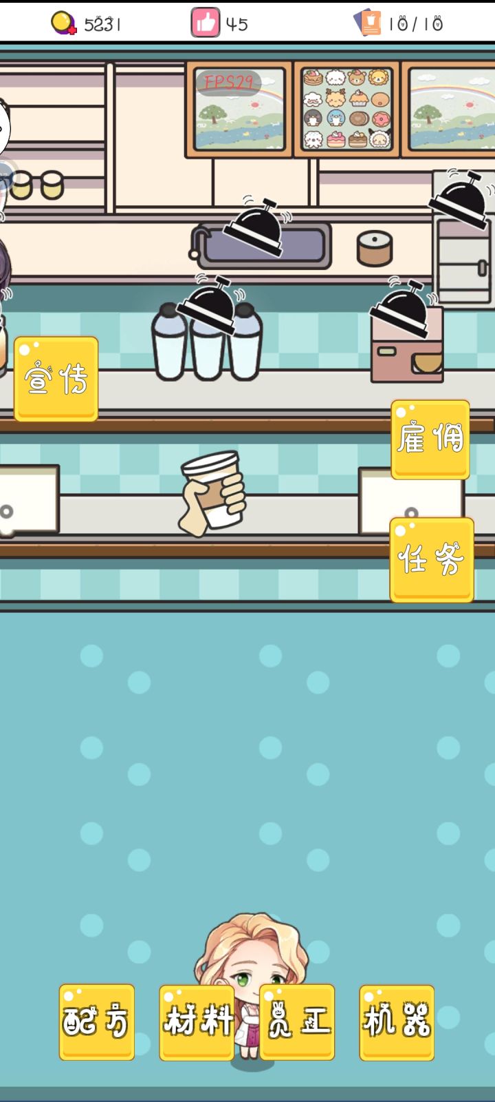 2.游戏采取的是半交互式经营,就是玩家可以全交由店员npc来经营,也可以手动帮助生产饮品。
