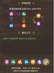 阵容满足【融合之力】的前提搭配阵容那就是上阵冥、人、妖、仙、神、魔各一个 !