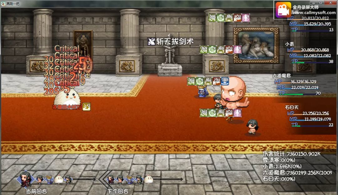 爆率队爬塔关键就是装备问题,最关键的就是18层的几件装备。 如图,法杖和护手。 主力周,三觉一个技能两百到三百万,50深渊有天使,曹操技能打不掉血还加血,全靠周输出。 法杖18层恒古未有boss掉,护手18层副本稀有boss掉,周没装备前靠的是曹操。 操哥加输出就完事,多动症晚期,有tp输出也高。 疾风丸就是个悲剧,本以为有了好武器输出能质变,没想到一回合也就80万左右,可以做工具人。 新加的多宝