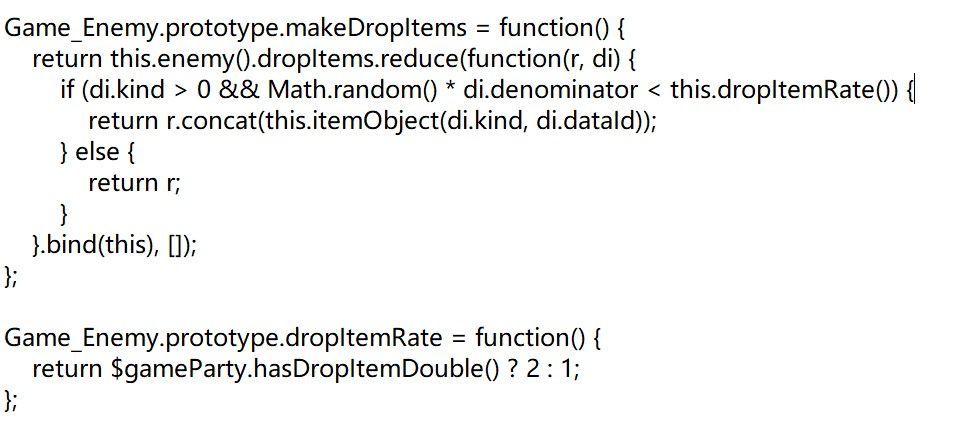 由于老迈一直不出掉落率的计算公式,且四宝藏队对于掉落率的提升极其明显。我决定从代码上获取掉落率的计算 ==============手动分割线=============== 1.首先我们要知道掉落物是怎么产生的,第一步找到引擎的脚本rpg_object 打开能找到生成掉落物的方法(别问为什么用记事本,问就是没有花里胡哨的颜色) 两个方法,第一个生成掉落物,第二个是掉落率,一倍或是两倍掉落率 除此之外