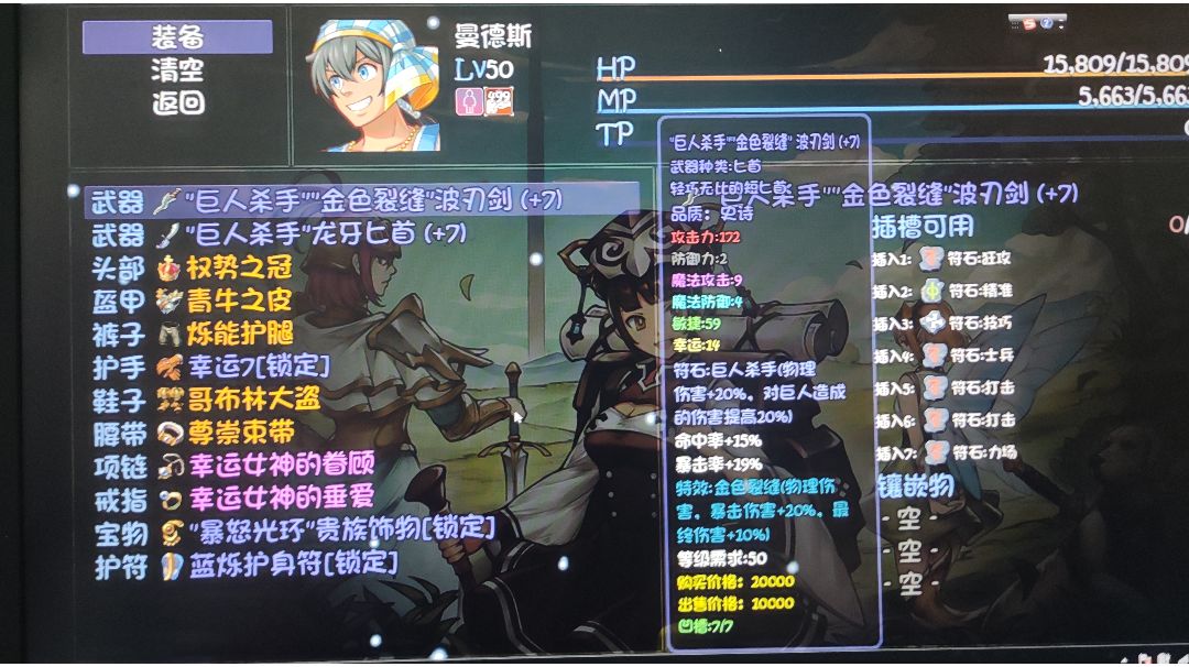 oh my god! 都2202年了,还有人在用奥数波动刮40深渊,不会吧? 条件所限,推荐一手3阶曼德斯。波斯王子曼德斯是粉卡,三阶超容易(相比之下35个不朽碎片可能还难一点) 曼德斯可以双持匕首,轻松100+暴击率 匕首推荐19紫装龙牙匕首,或者牛马关紫装“金色裂缝波刃剑”,一定要七孔,不打符文没有意义。 可以看图片里的装备,全身爆率装,其他装备都在45深渊以下,只有一件青牛之皮是50深渊装备,没有可以用35深渊的牛王之皮代替。轻松200w-400w伤害(技能效果,伤害会波动) 本人实测,全身爆率装的情况下,45深渊之前通通乱杀,两回合搞定。50深渊只要不碰到物抗高的boss,五回合内也能搞定。 图中装备不是最优,头可以打极限能量,护甲可以打“王”,裤子可以打暴击率,鞋子可以打“忍足”,宝物可以插毁灭符文。我用光环是因为没有狗铃,光环给周加一点暴击率。 队友可以带一个14小怪掉落不朽装备-癫舞腰鼓,加10%全队伤害,极其好用。 45之前的小怪就用16层的亚特兰蒂斯巨浪清理。 另外推荐“陈”的真气酒,回35能量就是爽。没有用哈啤也无伤大雅。