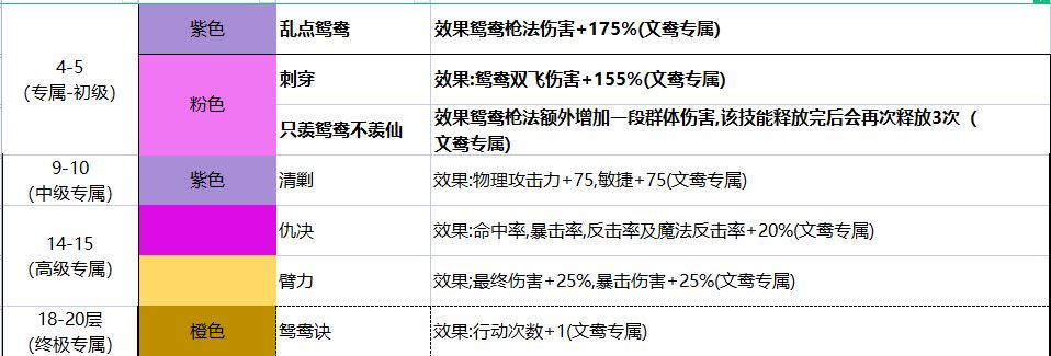 全人物技能等级划分〈更新云莱〉