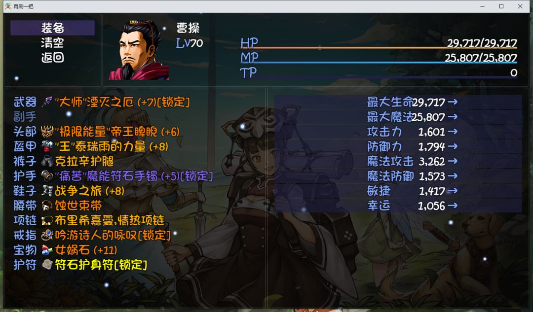 首先任意四个宝藏猎人凑成羁绊(240) 第6层哥布林刷4双幸运7手套(28%) 第10层牛头人出幸运套戒指 11层地下之河会出海盗帽子和幸运套项链 (4帽子加4幸运套160%) 曹操被动摸金校尉5% 宠物大菠萝和宠物技能12% 大菠萝珠宝10%(兑换码) 自由模式过了十六层送一个欧皇副手(20%) 曹操武器提升 破晓 首先刷10层牛头人或者11层刷出一个8孔一株草 然后按照特定顺序符文之语镶嵌