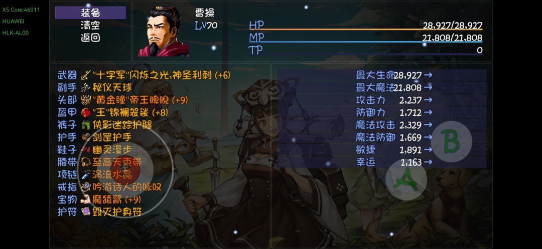 首先讲一下为什么不用钟碎片逃课大法 逃课属于投机取巧,并不属于真正实力做到的,我觉得RPG游戏主要的乐趣就是收集和搭配,如果通过逃课的方式拿到跨阶段的装备,那么就没有意义了,当然合理的搭配几个碎片去赌boss,也不失为一种技巧,但是我更喜欢堂堂正正的直面挑战(钟碎片有些败笔,应当改成当前生命值的百分之十,而不是最大生命值) 先上装备图 主c是曹操,两亿一动的泯灭,装备配置不算太难,都是65阶段的标