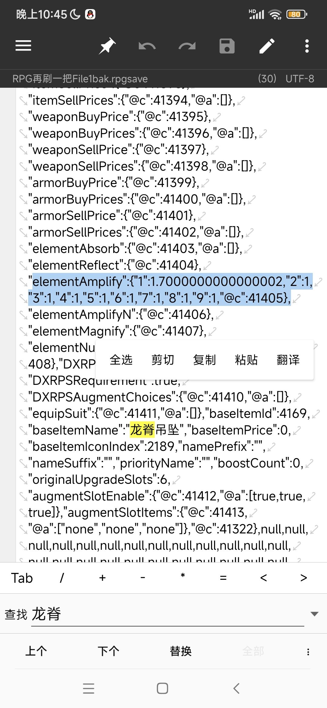 如何快速获得部分装备和宠物技能加成的数据 TapTap版本的存档内容有filebak.rpgsave这个文件,文件里记录了背包的装备和已经获得宠物技能的具体加成,以老版本龙脊项链为例 实际加成为物理伤害+170%,所有元素伤害+100% 多了描述上的70%物理伤害 以武器璀璨为例,实际加成为+115%物理伤害 以宠物技能玄铁剑法为例,实际加成为加20%使用剑时的伤害(包含最终伤害10%和用剑伤害1