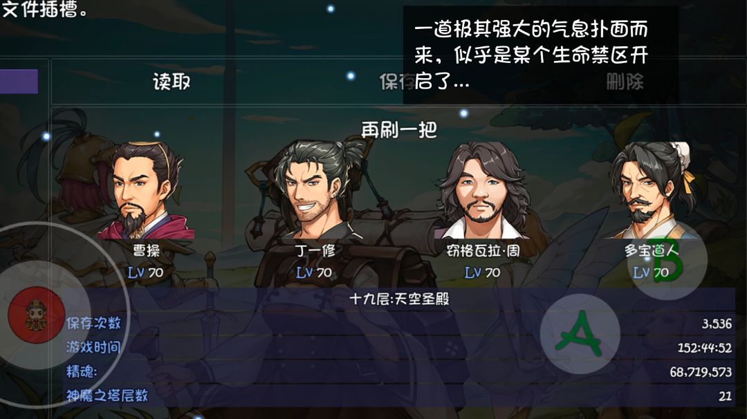 队伍配置如下图,等级挂机升到了30级,不然之前是24级差不多,打前喝药加存档就可以开始sl了。 打法是赌boss放单体技能打到防御状态的迪昂,不掉血,有减伤1000技能的角色应该也可以拿来代替。放战吼群体伤害时不暴击,没队友死基本上就稳了。迪昂一直防御,看情况放狂乱,酒剑仙就赌巨剑的暴击一下就是六万。可以多sl一会,收益巨大。sl过去开放30等级就直接起飞了,尽量堆点防御血量。