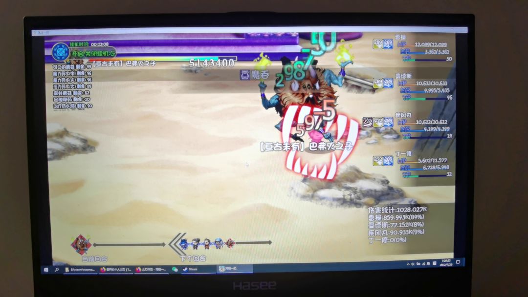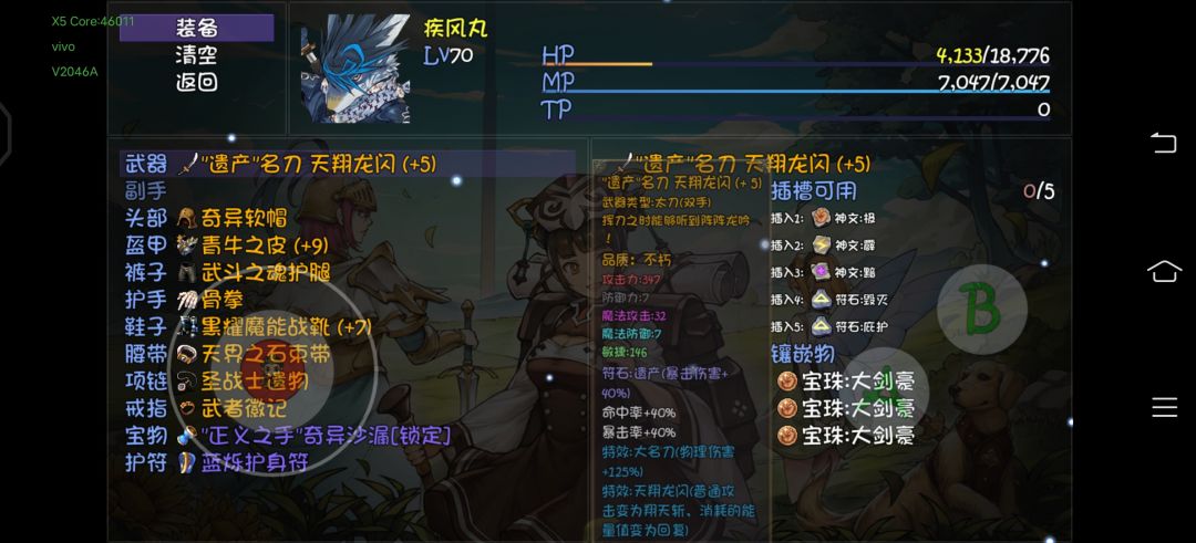 一发霸者70-80万,霸王连击45万*6,输出不便秘。刷45本除了被鸟人鹰踏暴击惨死(这个爆率是真的高),其他都很轻松,妈妈再也不用担心我去深渊进货了。 我的疾风丸1速拿割魂,割魂符文必须打破碎(命中降低物理防御1回合这个),疾风祝福手(普通攻击攻击附加风伤,精灵湖尾王掉的那个),爆率装头脚戒指项链。如果需要打伤害把魔攻暴击,饰品换正义之手8-11孔高爆率的打最高的精华液打满。输出不比十字斩差,还必中不便秘,没有空档期。输出循环是一刀普攻一次飞天连斩。或者普攻接飞天再五次普攻这么循环。 波斯王子是辅助兼偶尔帮忙奶,武器双匕首裂脊打1毒1黯灭(圣甲虫刷不到适合的洞,能刷到的话可以优化到一刀3降属性),衣服裤子穿纱雾堆下治疗,头鞋子手首饰也是掉率套,就技能随意甩,加钱奶不过来了帮奶一口保血线。 加钱就庇护套一套,武器一把匕首或者剑,带魔力的最好,打庇护开局2回合500免伤,副手世界树枝撑点点治疗,头和首饰是掉率套。 三辅助人宝物我选择三光环,压了疾风丸的攻击,光环分别是庇护,狂热,防御光环。 曹老板装备就很傻瓜了,武器终伤紫剑破晓,副手紫色暴击物理一直没换下来。项链是先挂了14亘古换了终伤暴击项链,然后去35深渊进货补了先锋头和牛皮衣(6洞打符文镀层或者8孔以上打双攻或者3属性),护腕么是48红莲8暴紫手腕(因为好刷,5洞打4暴,后面混到40深渊现在更换成了泰坦手),腰带是过关换的40暗伤,戒指和宝物(混沌)随意搭配的,要点是攻击高暴击高,洞多能把攻击尽可能顶上去。脚前面捡垃圾紫色散件,后面换18野图boss的终伤粉色镣铐。 此外宝宝建议把乌龟壳,龙人皮,黑狗皮这三个免伤技能备份存档sl到1个宝宝上,攻击无所谓,硬邦邦才最省心。