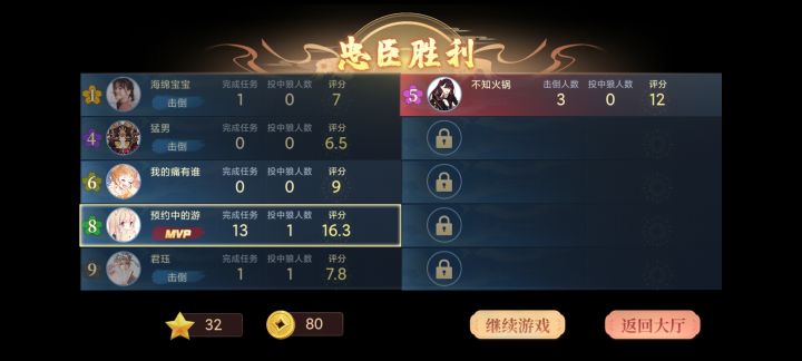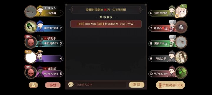 感觉平衡做的不好,玩了4局,3局反贼,1局皇帝。皇帝有人贴身保护,开局放技能,做任务。诸葛亮跟随皇帝保护,查人,投人。游戏体验极差。第1局,作为萌新,有一神队友杀了皇帝,然后被投出去了。另一队友刚杀完人,又被投出去了。不是!!!那个圆圈圈那么小,杀人全靠蹲,尾随容易被人发现。不集中注意力,蹲到的人晃一下,就消失了。第2局,好不容易杀个人,结果杀错了,杀成同阵营的朋友,我又被投出去,这局失败。啊