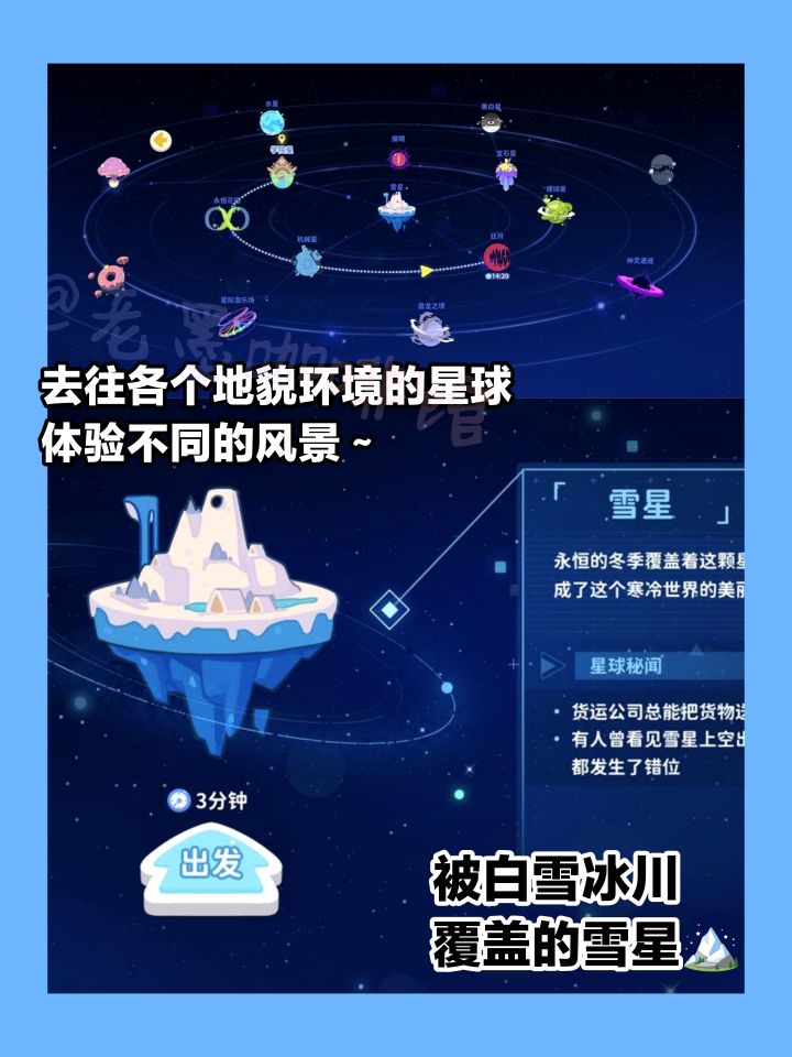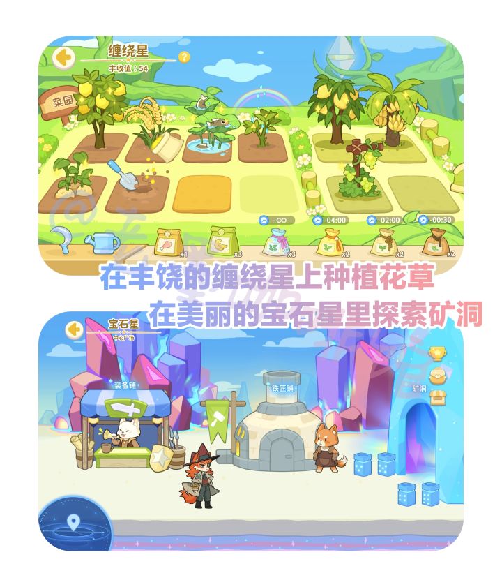 这画风牛哇看到封面就被狠狠暴击💥无论是画面场景还是角色立绘,都超级可爱🌏多种风格不同的星球,特产➕主题(如冰雪覆盖、植物生长、盛产宝石…)还有经典打卡✨在故事书中记录你走过的每一处风景名胜~🌎驾驶着太空列车,在广袤无垠的宇宙中探索,真集一起冒险的同伴,共同对抗凶猛的宇宙海盗…🌍泡温泉、养花(熟悉的总得种点什么👍hhh)挖掘矿洞、探索迷宫… 多种丰富玩法小游戏😻更重要的是,每个画面都那么赏心