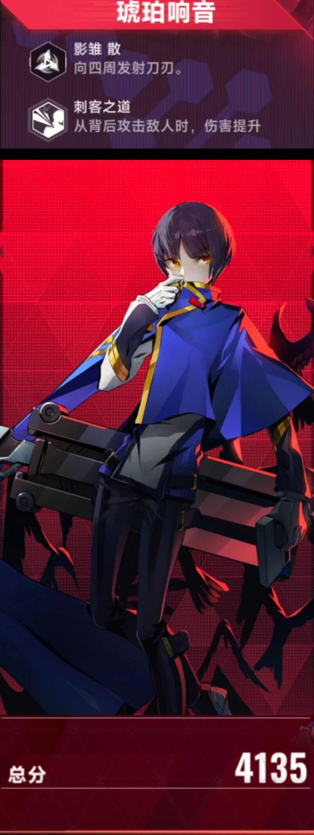 琥珀响音 主动:影雏 · 散 向四周发射刀刃。 总伤害特高, 可以吃到被动千年杀般的增伤,传送追击 前期清怪和当防空技挺好用的。 被动:刺客之道 从背后攻击敌人时, 伤害提升。 从背后攻击敌人时有十成的高额加算伤害。 (PS:虽然后期会被潜能的加伤稀释,但到那时战力也已成型) #吃瓜爆料 #浅评一下 #游戏安利 #游戏推荐 #游戏讨论 #游戏资讯 #苍翼混沌效应