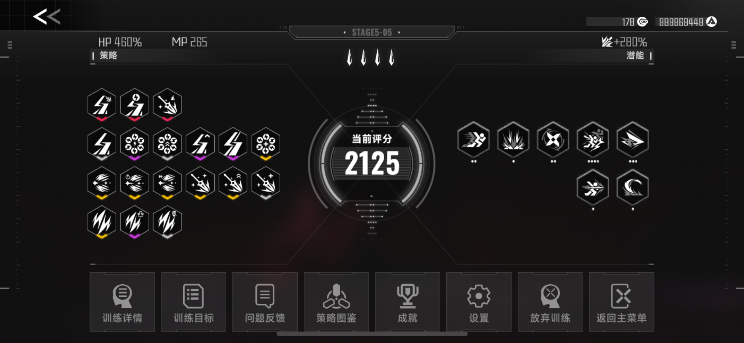 一、角色全潜能成就(15) 没什么好说的,正常 商店、高级战斗凹潜能就可以了 二、多红策略成就(4) 这里只提供一种方法 传承策略选择 1.中毒毒弹,雷云火弹 2.光波快充,圣光标记 局内策略顺序 先拿至圣标记, 再去拿电解化毒, 补满策略(当前策略20) 去黑市,sl出5个随机策略, 这样就有23个策略(8红) 攻略看这个 佳策数成,破敌垂手可得!(9红隐藏成就) https://www.tap