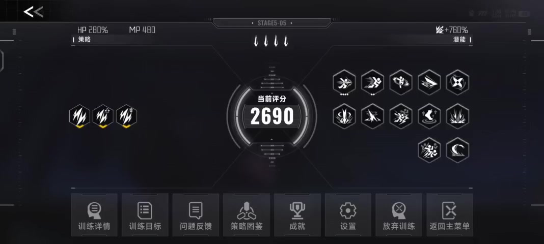 当前版本全成就达成!(100个) 当前版本所有原型体都刷了一个评分5500以上(MP1000以上)的全潜能+全金6红策略的数据体! 常用策略传承体+策略搭配传承体也刷了一些! 当前版本全角色全皮肤达成! 意识挑战全无伤达成! 意识试炼所有角色都通关了! 策略图鉴全金达成! 所有事像全解锁! 意识结晶全3星! 机器人涂装全解锁!(包括颜色都解锁了[表情_吃瓜]) 这下应该真的可以安安心