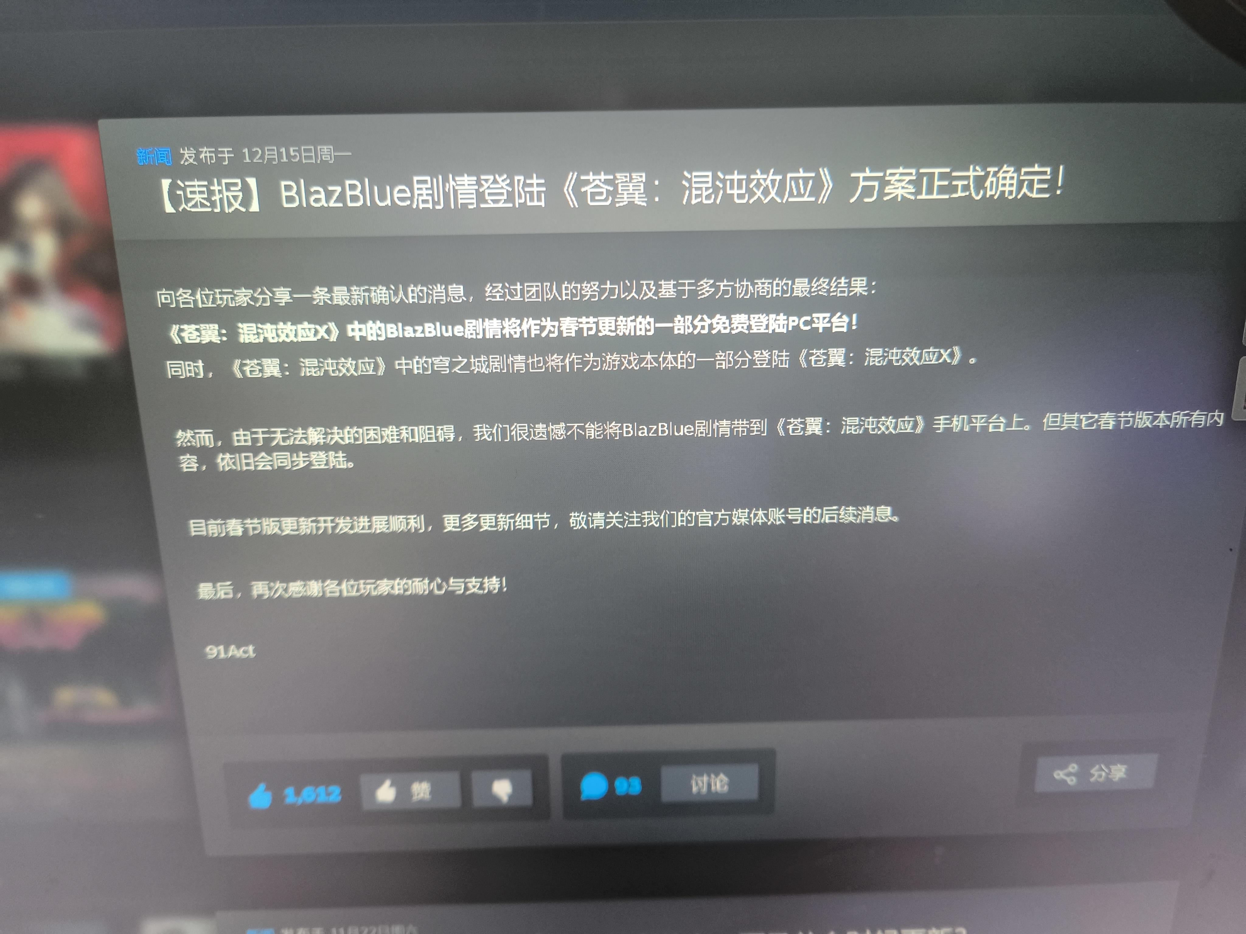 手机端将无法更新苍翼混沌效应X的剧情
