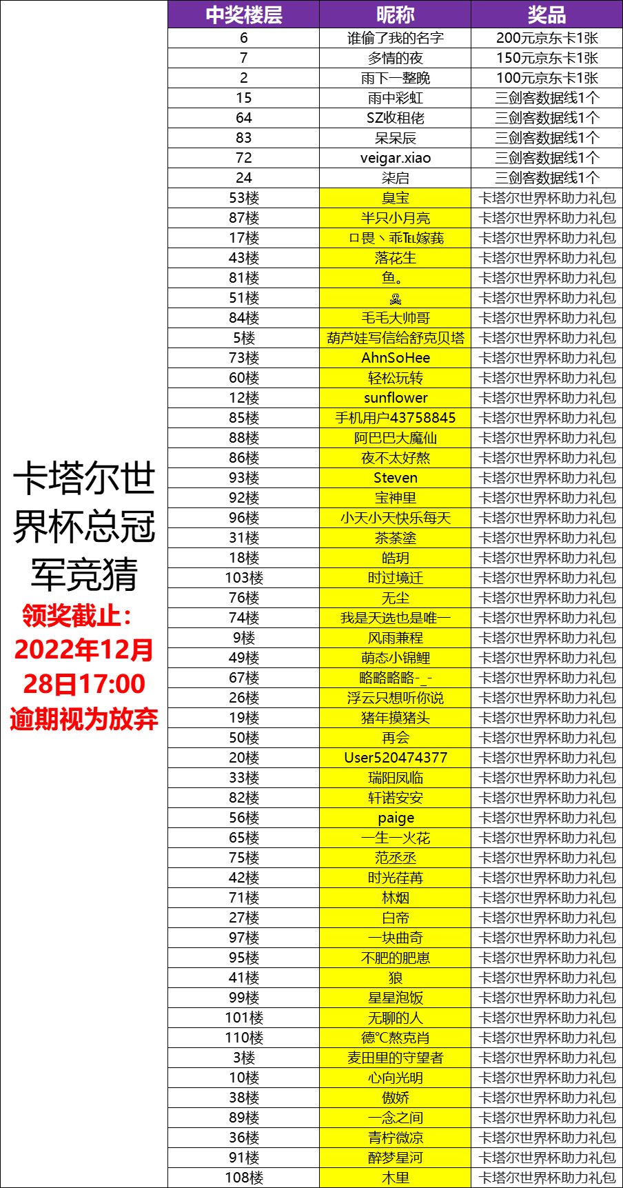 【已开奖】【世界杯竞猜第二期】四强冠军花落谁家,京东卡礼包送送送