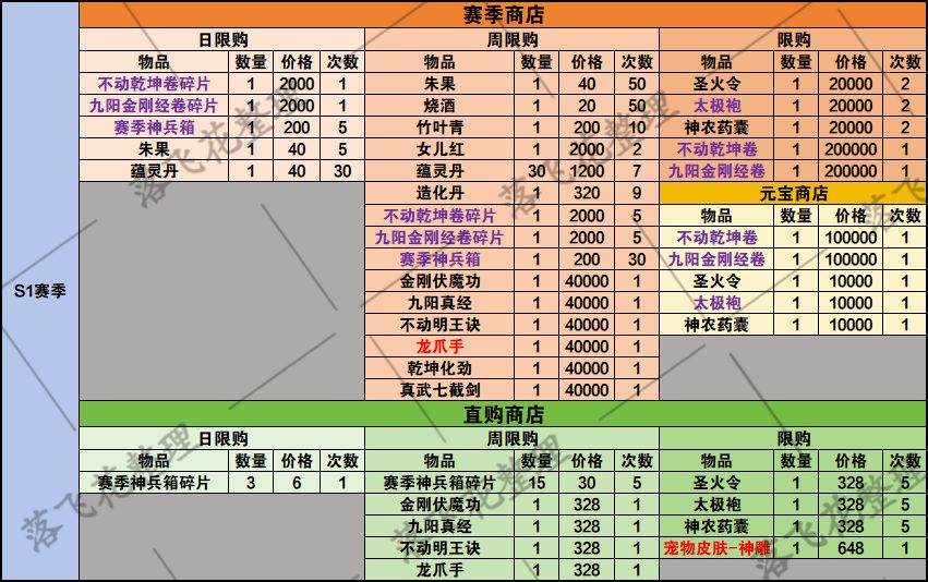 本攻略特别鸣谢,光明顶5服玩家:众神灬宸瑞提供的账号。 大家好,我是攻略组搁浅,很高兴又和大家见面了。目前光明顶老区的小伙伴已经开启了S2赛季,现在带大家一起看看S2赛季迎来了怎样全新的玩法。 一、赛季活动一览 1.首先,S2赛季延续了S1赛季的群侠殿玩法,打赢3个殿主的百分比分身,按星级可以领取相应的材料,从药材变成了新赛季的资源道具:悟道丹。 2.大家都比较关注的赛季商店#新倚天屠龙记
