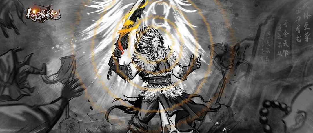 各位少主: 叨妹为大家准备了咱们游戏中关于《倚天屠龙记》各个名场面的水墨风壁纸,希望带给大家这些名场面的同时,也能让大家回忆起当初看倚天的感觉。 如果少主心中还有其他念念不忘的名场面的话也可以多多找叨妹交流哦,叨妹会再去给设计大佬磨嘴皮子的,嘻嘻^ ^ 谢逊王盘山夺刀 天鹰教得到屠龙刀以后,在王盘山岛上召开扬刀立威大会。随着一记狮吼功,金毛狮王谢逊突然出现,凭借强大的实力夺得了屠龙宝刀......
