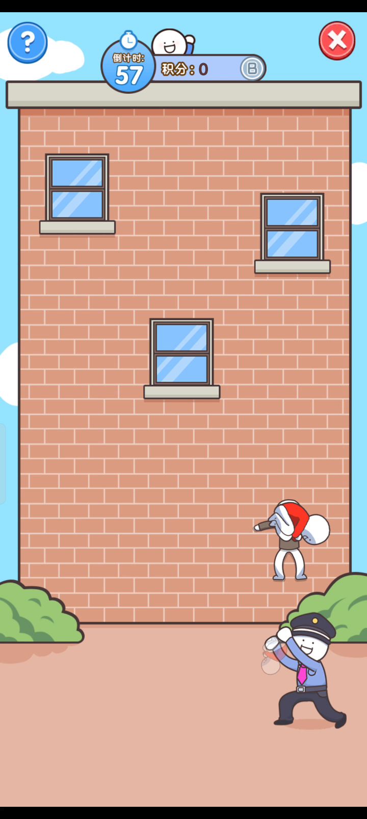 长按蓄力,滑动手指转移位置,松手扔小红,蓄力过久或过短都会导致小红砸墙上,而且随着时间过去,小偷会出现得越来越快,盯着最先出现的那个打就行