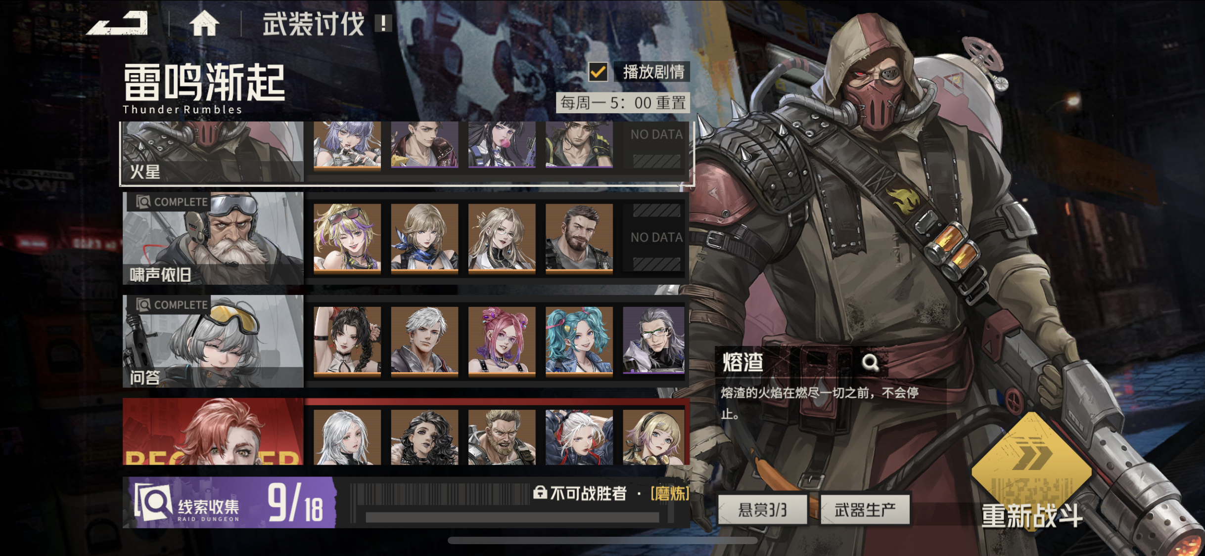 一个低练难民阵容,第三关有多的霰弹枪可以拉个里贝卡换掉虹支援其他战场,最后一关威廉可以用艾米丽替换,白月可以用任意再动清场替换。