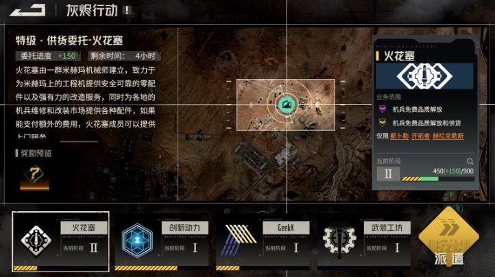 普通生意 要站在能源桩的九宫格范围内才能恢复AP,由于能源桩是可攻击的状态,所以千万不要给打破了。 机兵挑战(海量战斗) 本关虽然要面对非常多的敌人,但在打完第四章,拓殖许可等级解锁到4-1之后,我方升级到37级之后,几乎没有难度,而且关卡中还有补给点,让战斗难度更低。 速度激情(堵路) 第一回合:黛娜与格兰特移动到图中位置 第二回合:黛娜与格兰特移动到图中位置 大盾兵用盾牌猛击将图中机兵击退,堵