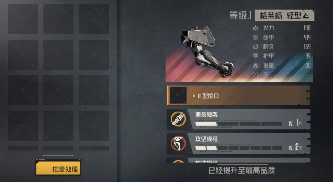 机甲风战棋手游《钢岚》公测了,我发现在一个月前的内测卡池吐槽视频里,我说机甲部件升满需要抽到四次(本体+耗材),这话没错,但属于歪打正着,后来我花了两个多小时才研究明白这里边儿的门道,和大家讲一讲。 机甲部件的品质可以提升3次。升满需要在本体的基础上再抽3件。但不是重复一次就提升一次的潜能命座,而是更复杂的进阶机制。提升第1次和第3次必须用同名装备(即一模一样的同品质部件),但第二次可以用同类