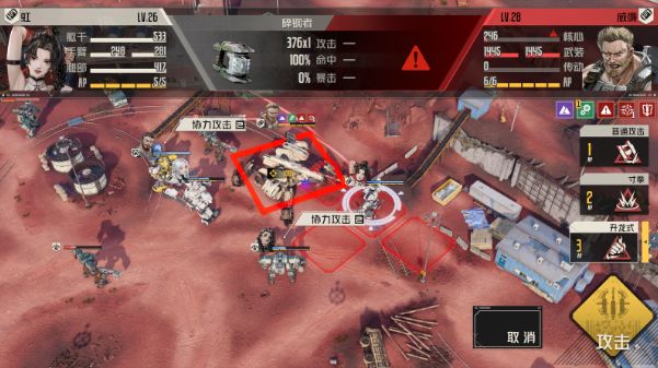 大家好,我是正在闯关的何二维一。今天的攻略我们赶紧来看下最新的限定活动,零落之刻的全玩法攻略,希望能给大家带来一些小小的帮助。 首先我们来说剧情关卡,第一关“伪装”开始我们只能使用西尔维娅,并且这个是系统设定的60级的西尔维娅,因此通关且完成3个成就的思路就必须有章法可循。 首先第1回合我们将右侧的两个突击敌人用2AP技能点头直接干掉,然后站在上图中的位置结束第1回合。 第2回合我们用2AP技能点