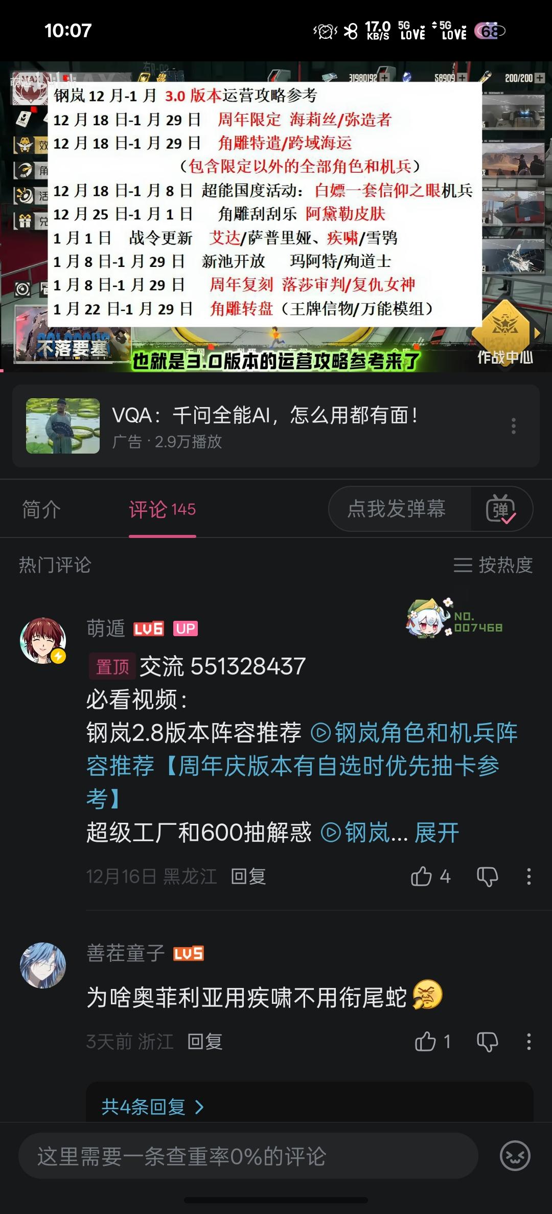 这次周年活动跟我预想中规划的差不多,2.5套蜜枣,1套疾啸,1命海莉丝+艾达+奥德利,歪了两个T和威廉,剩下的看大佬们还有啥推荐的#钢岚攻略