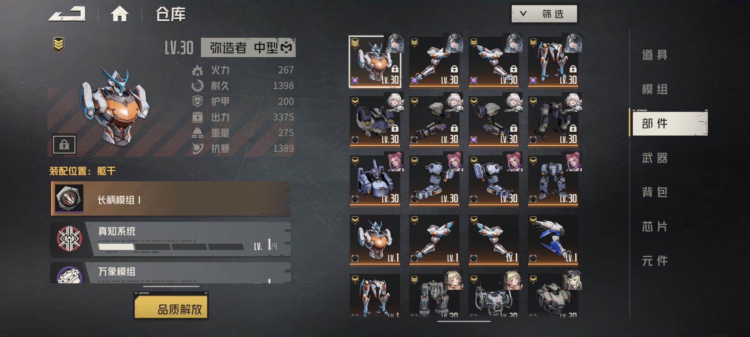 最近萌新比较多,尽量简单的讲一下钢岚升阶的养成机制,如有缺漏欢迎补充S甲有四个品质【金1】【金2】【金3】【彩】,刚抽到手的甲是【金1】,1、【金1】->【金2】主要有四种方式/道具(不算超级工厂)①吃相同的金甲,注意部位也得一样,比如说头只能吃头。②吃一个跑片(灰烬行动)给的改进模块③吃一个通用改进模块④吃一个核心改进模块2、【金2】->【金3】这个阶段不需要吃金甲和模块,用紫甲