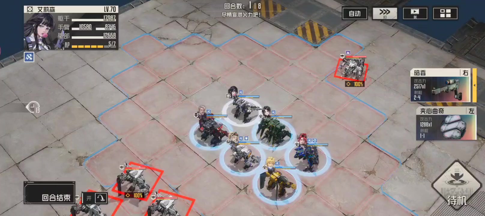 新角色是3命郑乐萱开彩复仇,我自己突击大队一般是这个阵容,如果是5人队,看情况是否上盾,测试下来好像伤害还行,49.6万躯干3回合干掉了#钢岚新版本 #钢岚1