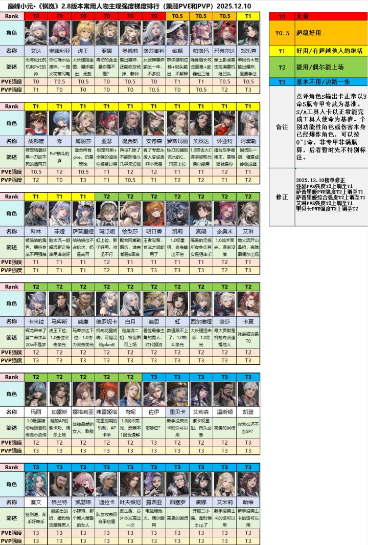钢岚2.8版本常用人物主观强度梯度排行榜