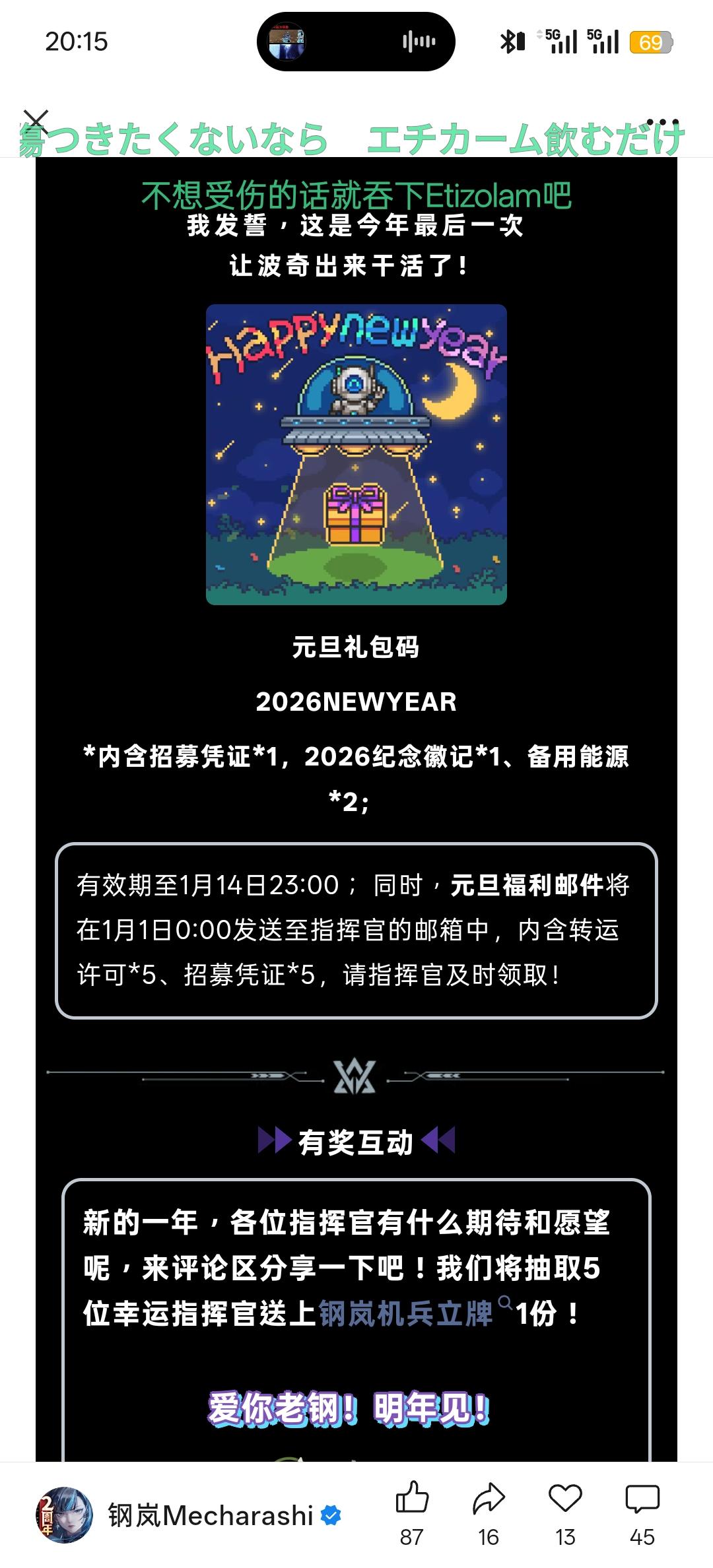 国际服终于官宣1月15日联动上线了,up主一个小激动就拿国服的老视频剪辑了一个小视频,哈哈,祝大家元旦快乐#钢岚国际服下载 #钢岚 #游戏日常
