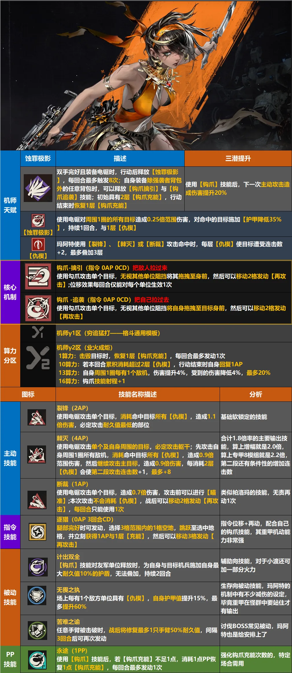 已经玩耍了一阵,对她的印象真是个慢节奏角色思维不能急,不然忘动了哈哈。还有就是像不配带被动一样,你想基础形态有点用就得带那个技能,你想虚粒子特别点就得带那个技能,这就锁死了这两技能,想一回合变身就只能带那个指令。能带别的被动吗,我只能想到我不追求速攻速杀。也因此打地火,电锯也好,可以换个被动,吃反击不用那么痛。哦,她的重启也有点东西,被debuff限死的再动,她能不受影响,不过变虚粒子还是受