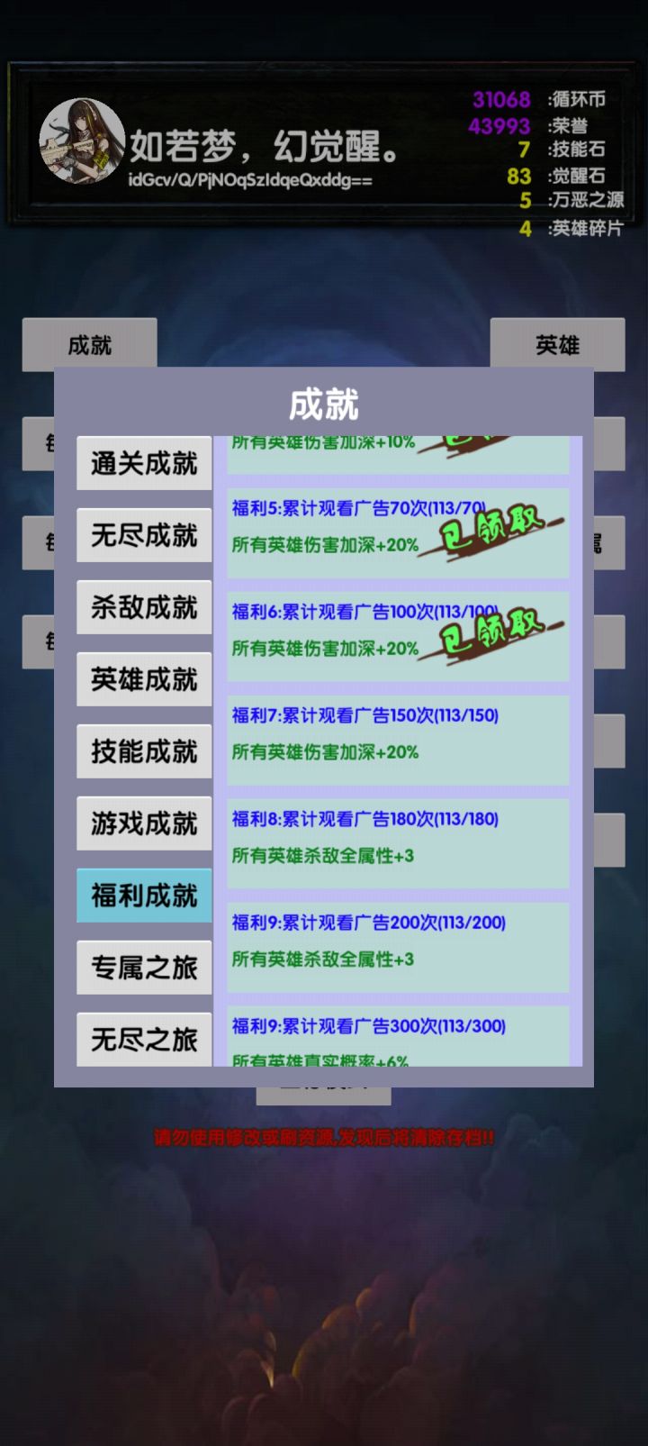 种树是个坑了,不种无尽前没资源。种完累的眼酸手麻!!!建议优化一下。基础开局先看4次广告。。。可以10次拉满,多余的资源去升级树和买技能。2次拿荣誉的广告,买小魔女。2次循环币广告,买雅典娜。买完角色之后去领成就奖励。然后开始屠杀吧。进图5钻石全换金币(10关前,钻石全部换金币)然后把小魔女(敏)和安娜(辅助)放上,剩下的金币全部种树,10关之前一直种树。如果感觉打不过也可以再放个安森